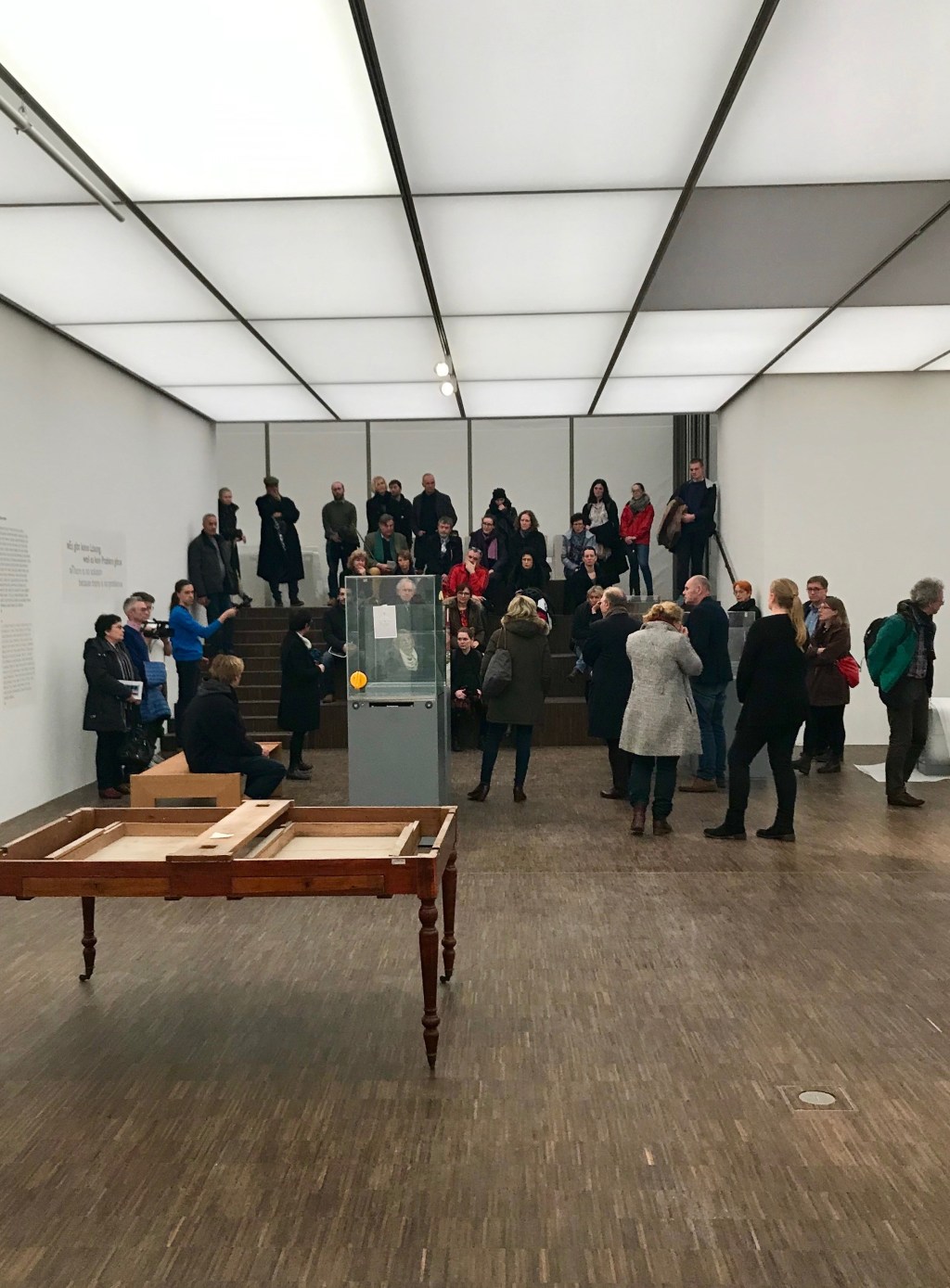 Die Kuratoren Dr. Kornelia Röder und Dr. Gerhard Graulich führten uns im Anschluss durch die sich im Aufbau befindlichen Ausstellungsräume im Neubau des Schweriner Museums. Sie erläuterten Fragen, Überlegungen und Herausforderungen, die sie bei der Konzeption von „MARCEL DUCHAMP: Das Unmögliche sehen“ begleiten. Mit französischen Chansons, Rotwein und Baguette fand der Abend einen wunderbaren Ausklang im Café KunstPause.